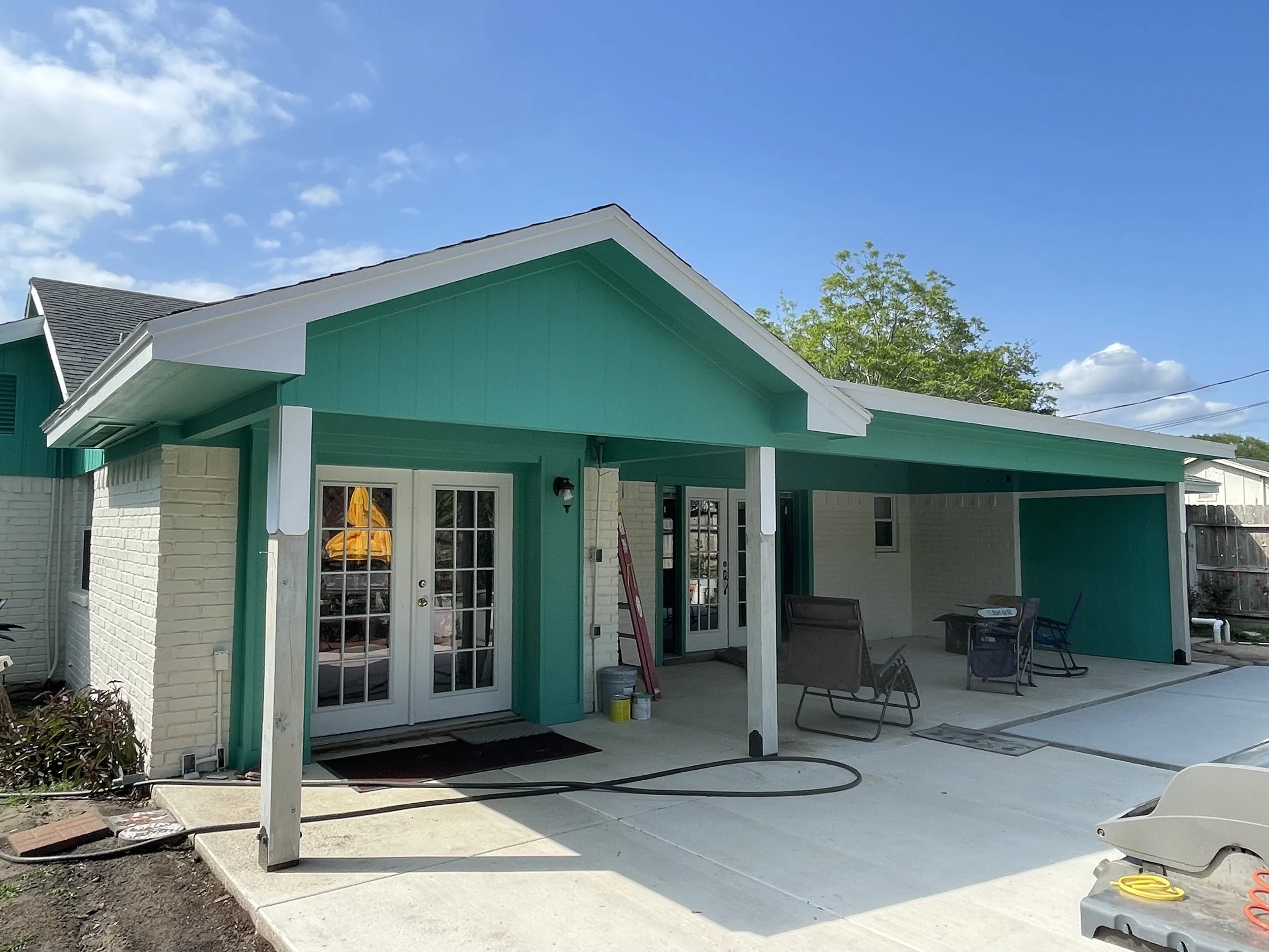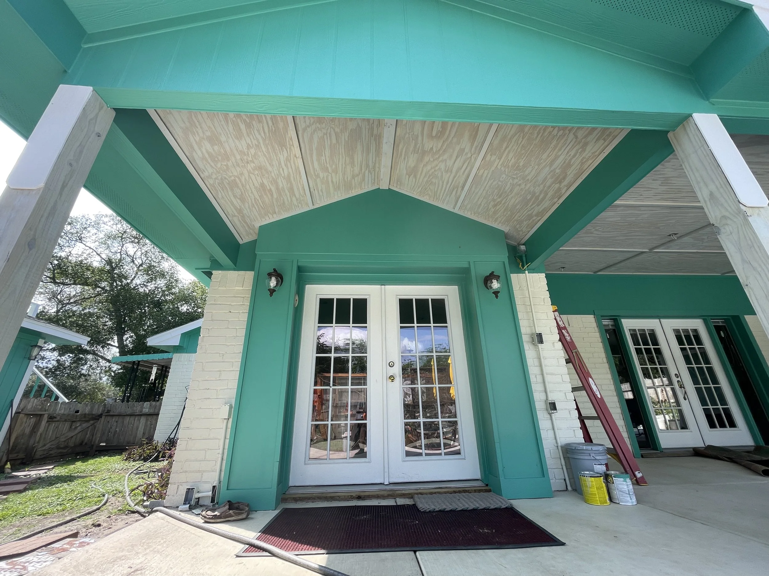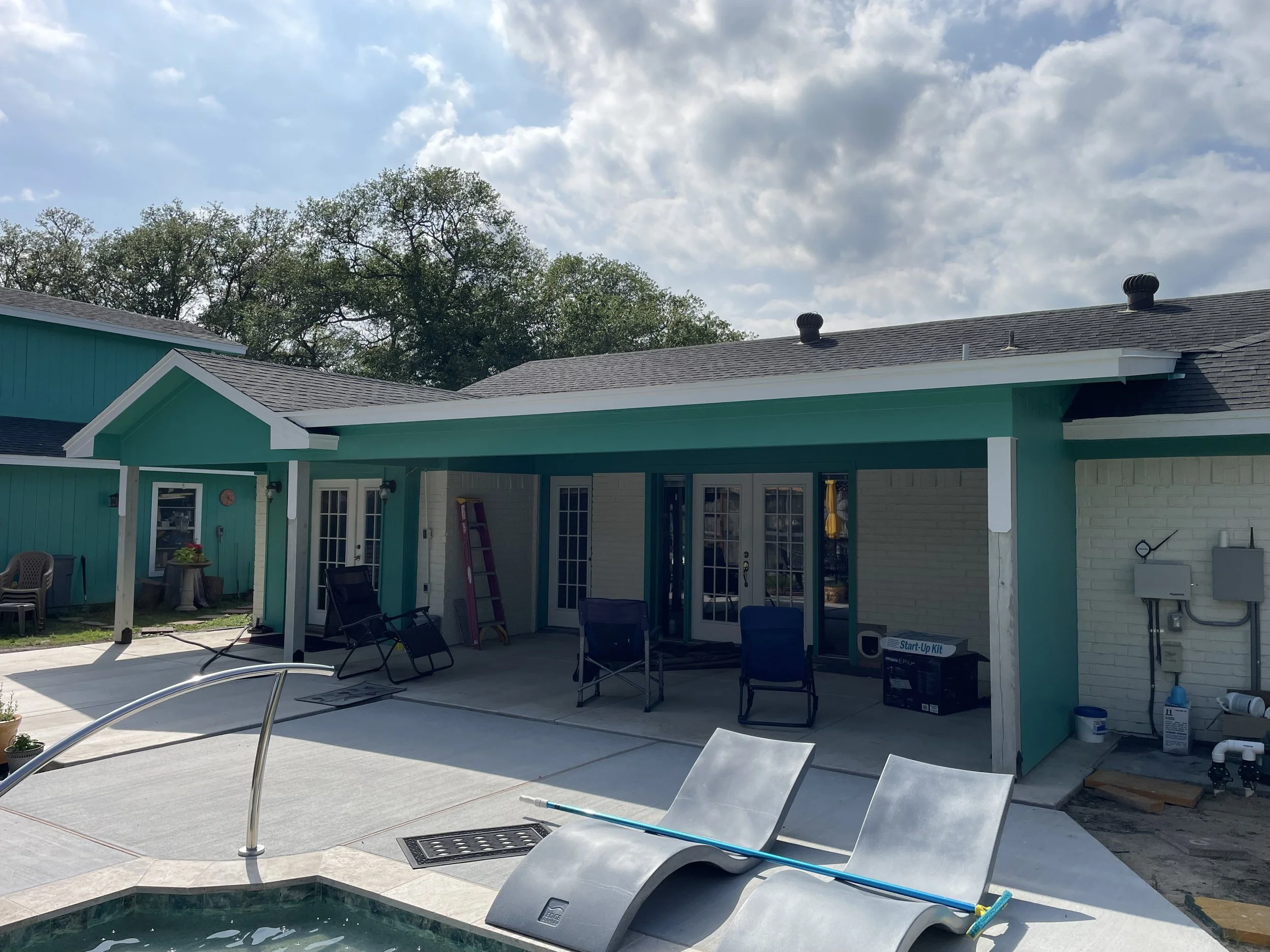 After such a bold bathroom renovation we were given the opportunity to transform the exterior of this customer’s home. Those colors continue outside to give a little “island vibe” to this new backyard sanctuary. Our customer elected to do his own electrical work here, which we’re glad to accommodate.