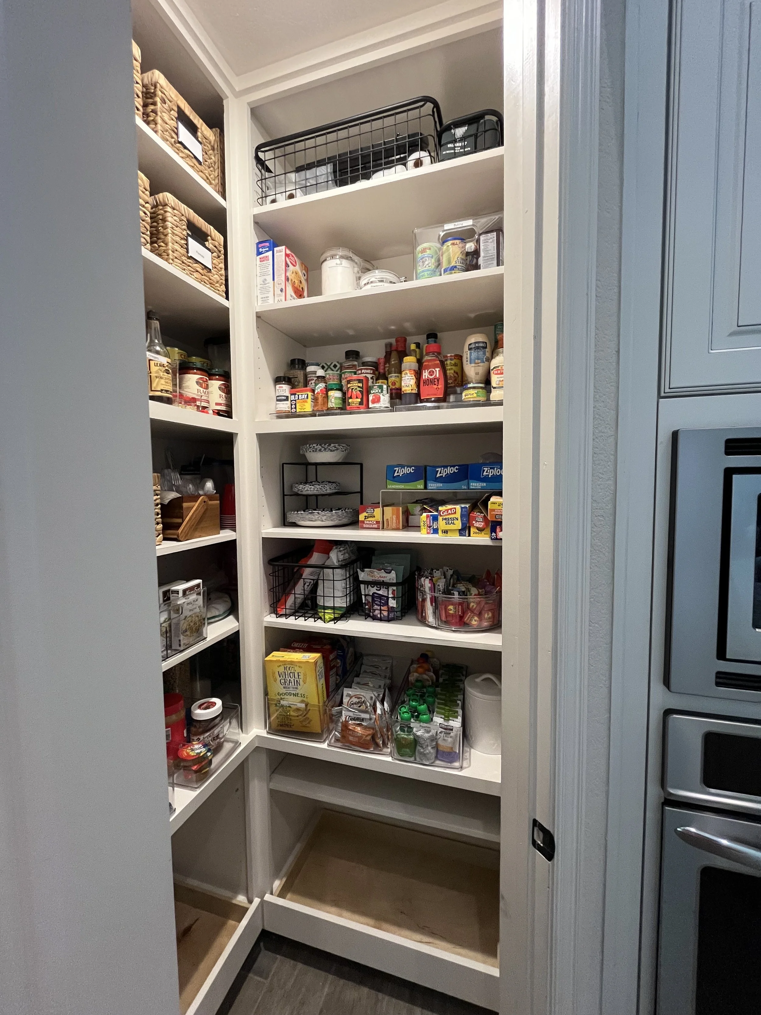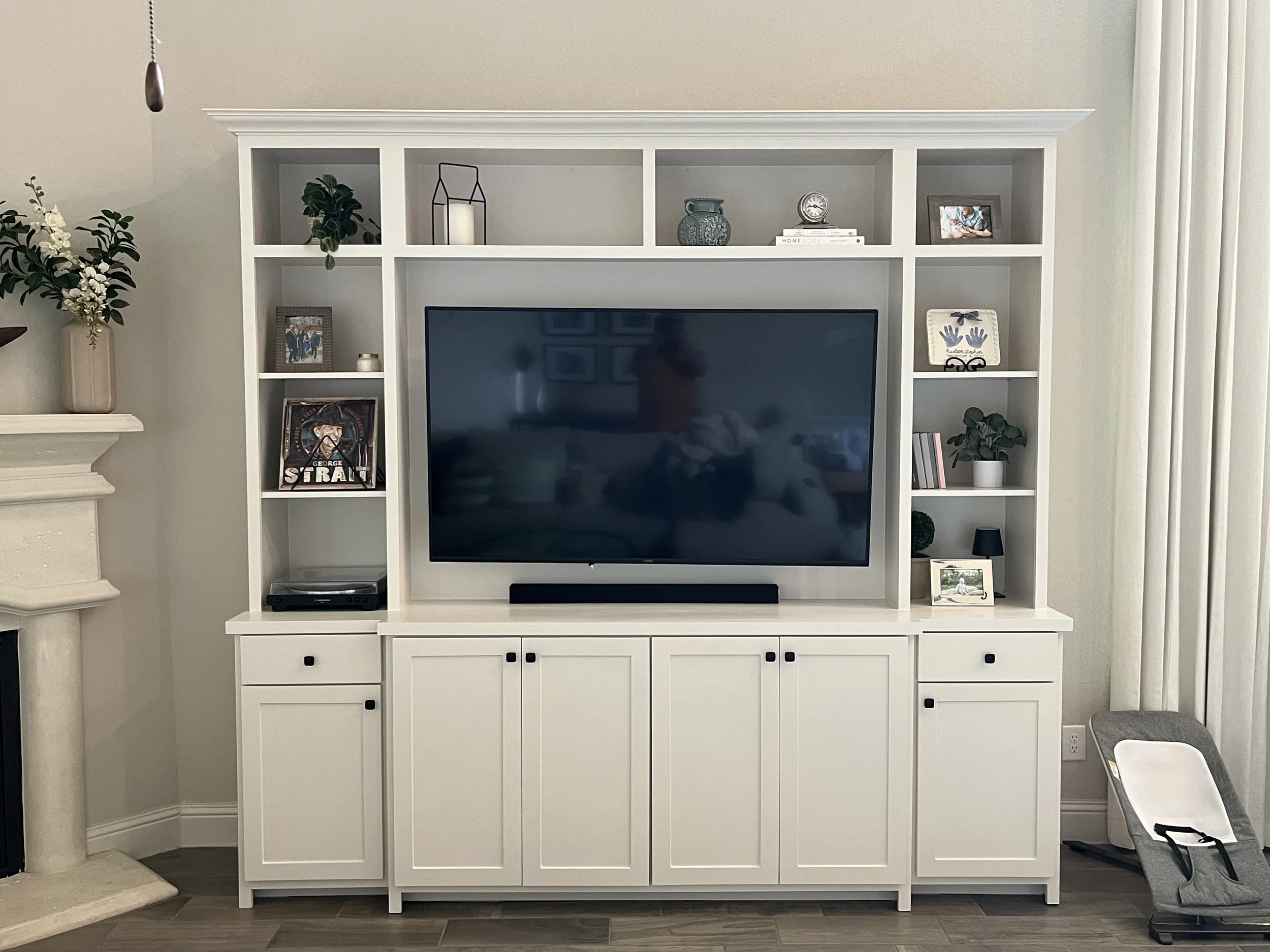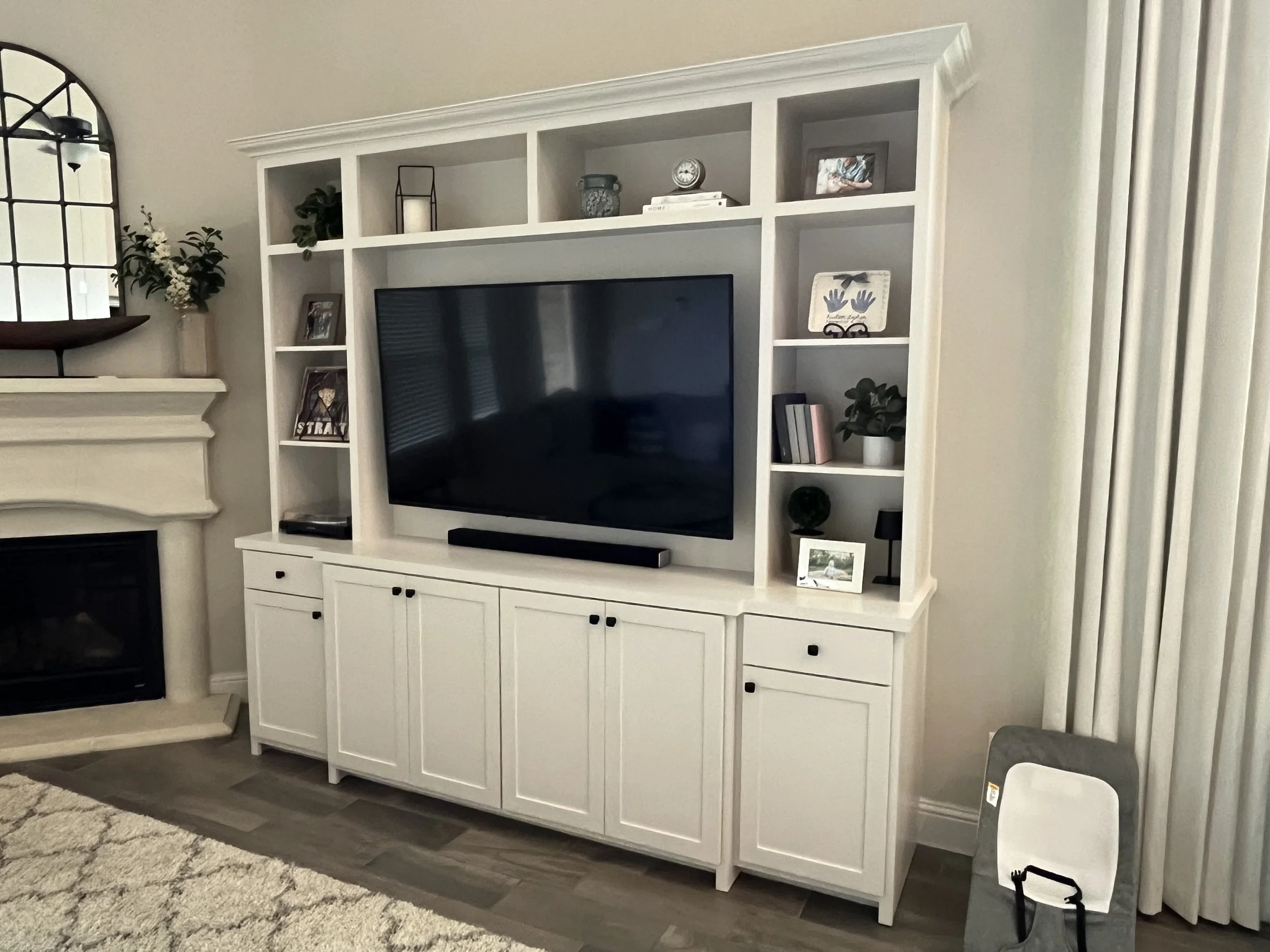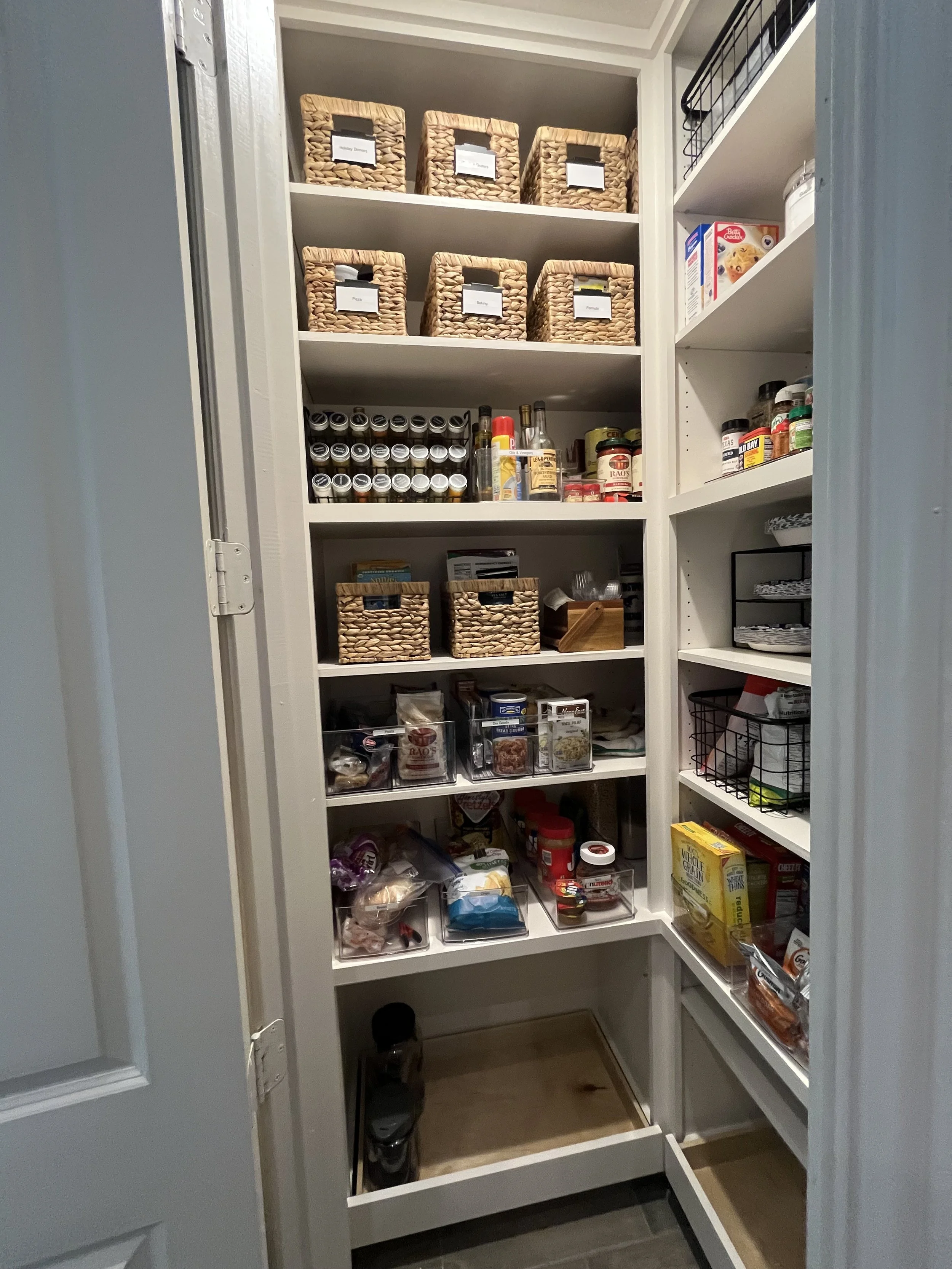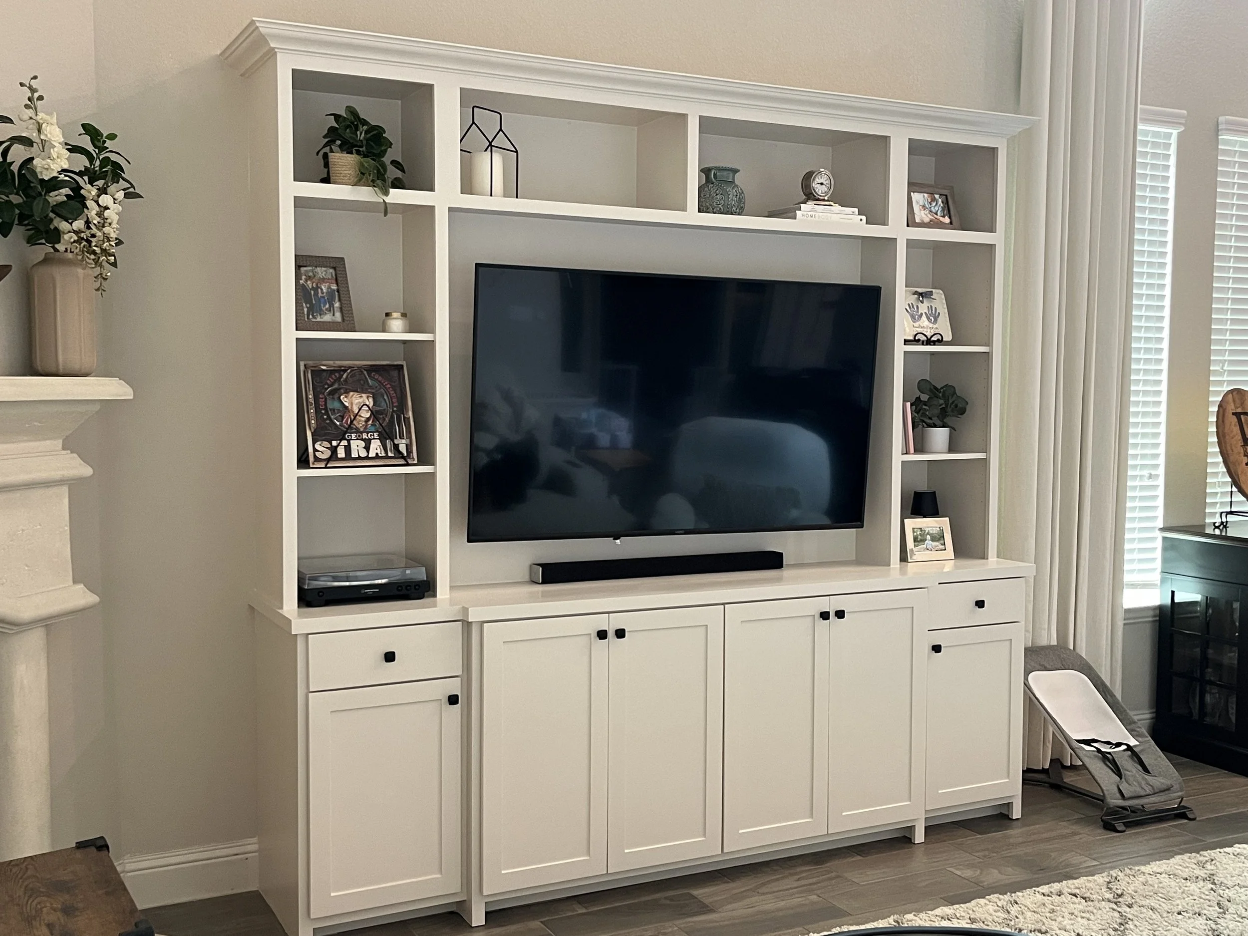 Another repeat customer, this time going from the outside to inside. Custom-built entertainment center and revamped pantry.