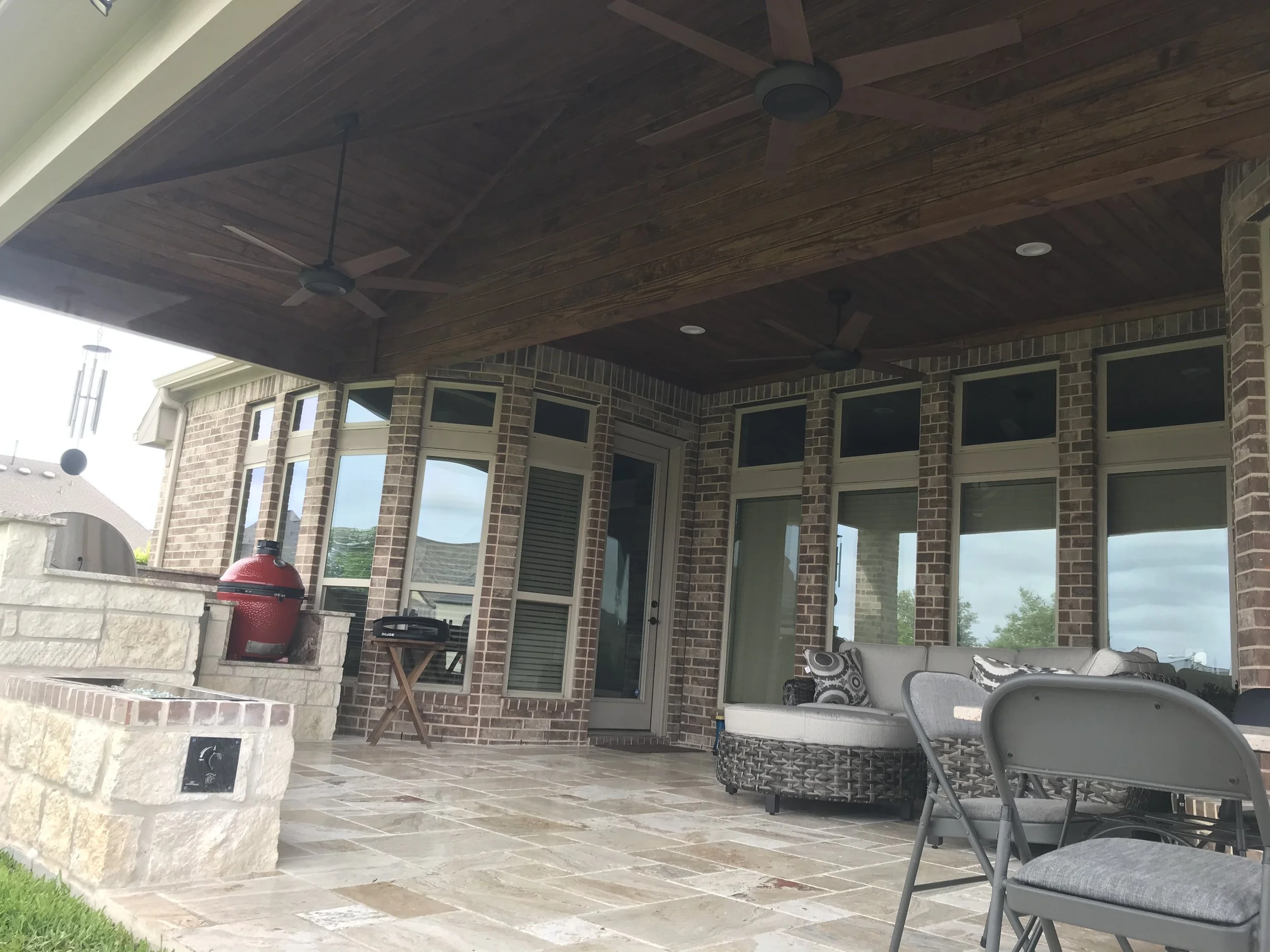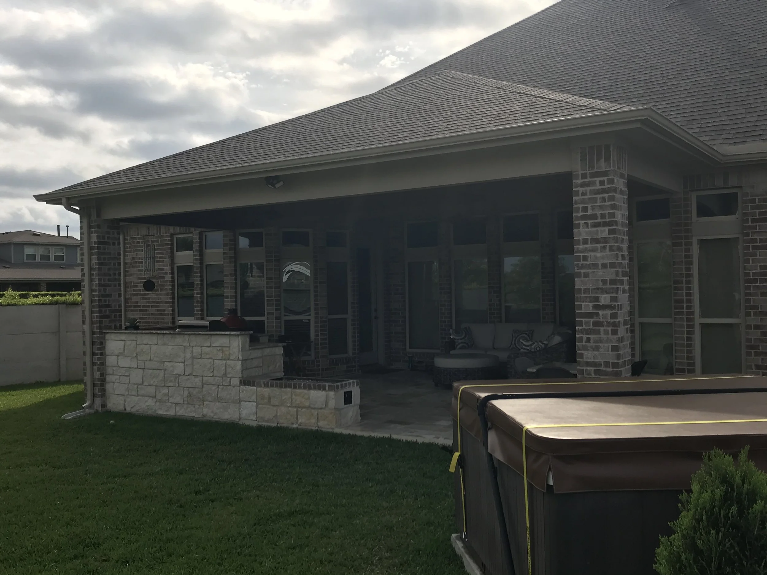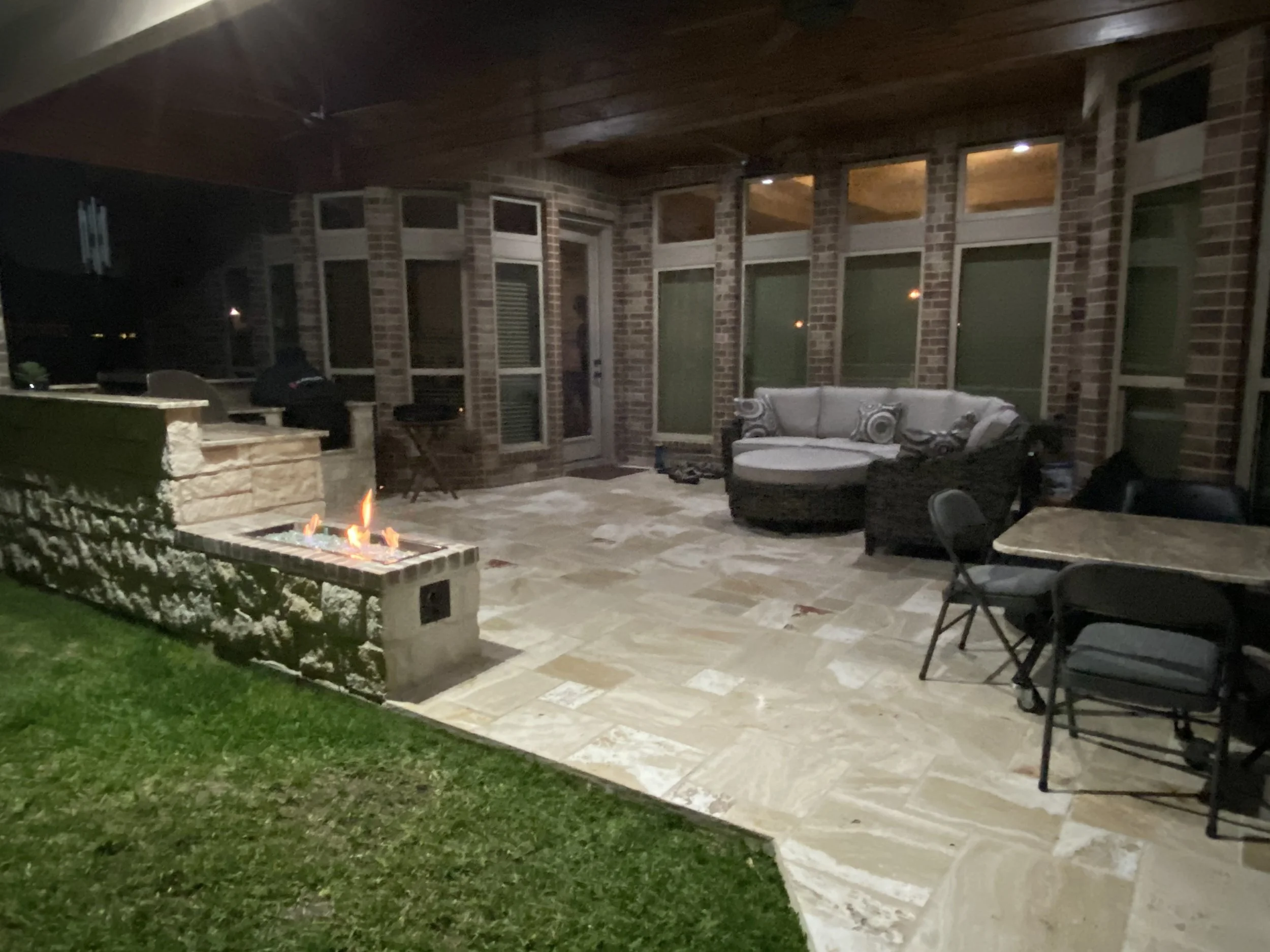 With next to no cover it sure was hard to enjoy a nice time cooking outside. Not anymore! Look at all that counter space and grilling options! Even a fun fire feature to enjoy in the evening darkness.